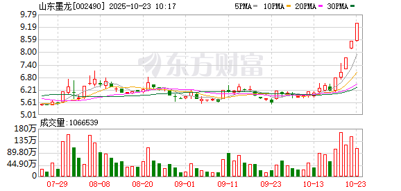 山东墨龙再度涨停,5个交易日内录得4个涨停,累计涨幅为51.95%,累计换手率为111.42%。截至9:33,该股今日成交量6187.47万股,成交金额5.54亿元,换手率11.42%。最新A股总市值达50.71亿元。